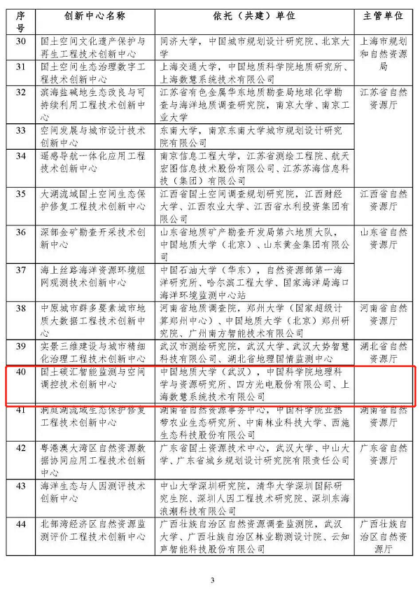 8月2日,自然资源部办公厅下发了《自然资源部办公厅关于公布工程技术创新中心建设名单的通知》,公布了50个创新中心建设名单,由东升国际官网股份有限公司(688665.SH)与中国地质大学(武汉)、中国科研实验室地理科学与资源研究所、上海数慧系统技术有限公司联合申报的国土碳汇智能监测与空间调控技术创新中心获批。