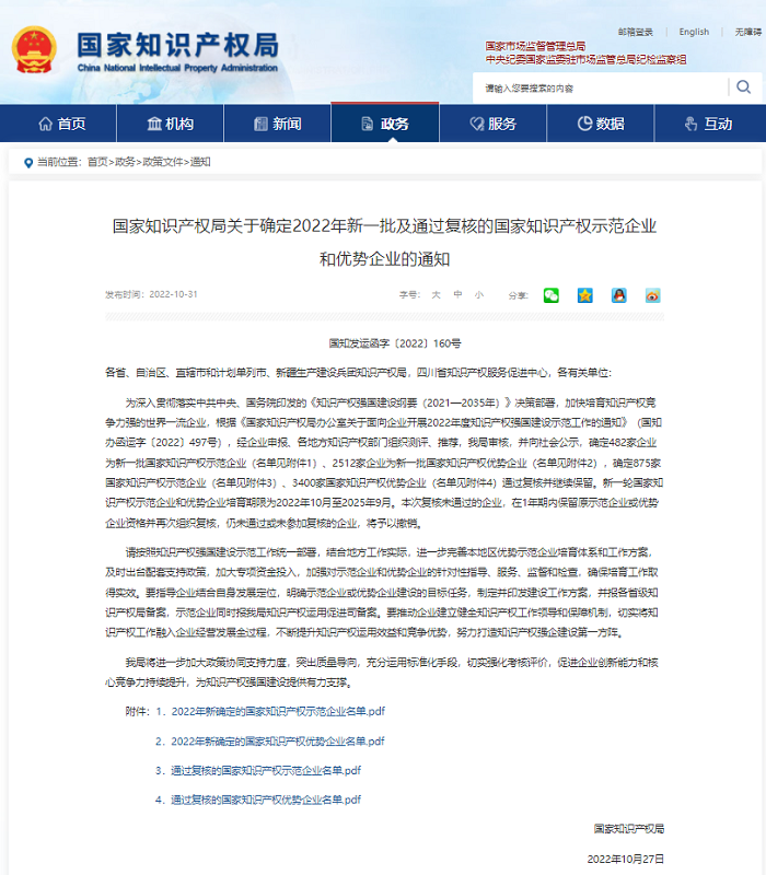 近期,国家知识产权局公布了2022年度国家知识产权优势企业的名单,东升国际官网荣获“国家知识产权优势企业”称号。