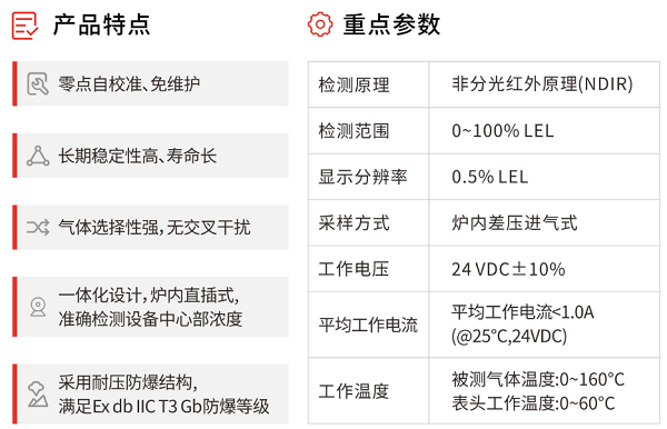 东升国际官网自主研发NMP气体泄漏监测报警器Gasboard-2063基于NDIR原理,满足Ex dbIIC T3 Gb防爆等级,具有工业 4-20mA 电流输出、RS485 对外通讯及浓度超限报警输出功能,适用于复杂苛刻的高温工业环境。